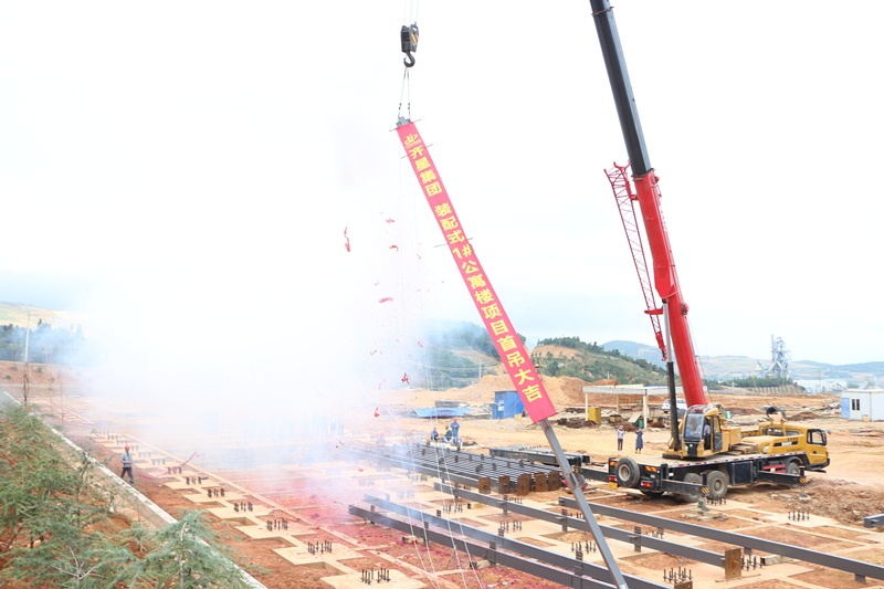 云南齊星杭蕭鋼構(gòu)基地公寓樓首吊成功