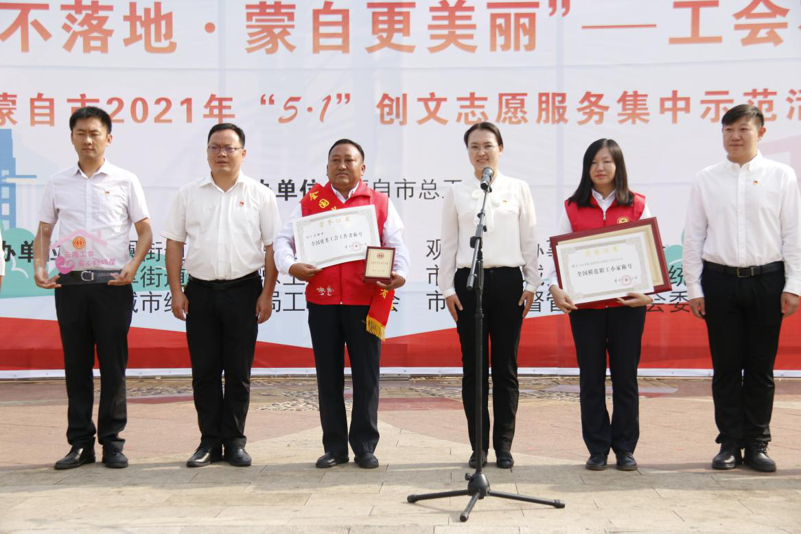 4月30日,蒙自市總工會在南湖廣場開展“煙頭不落地·蒙自更美麗”志愿服務(wù)集中示范活動暨“全國模范職工小家”、“全國優(yōu)秀工會工作者”頒獎儀式,...